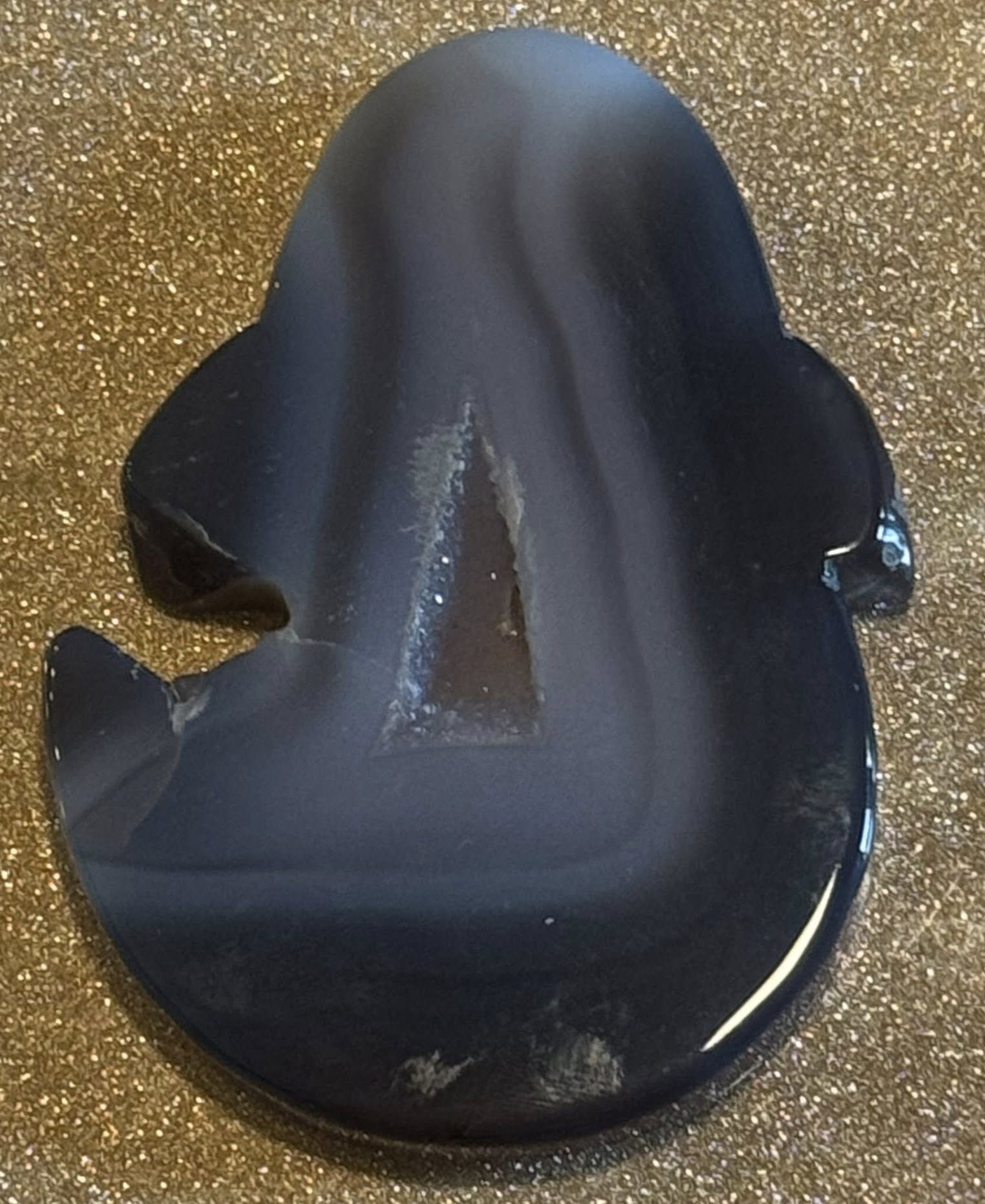 4 by 3 by 1/4 inch and 126 grams agate ghost carving with sparkling drusy.