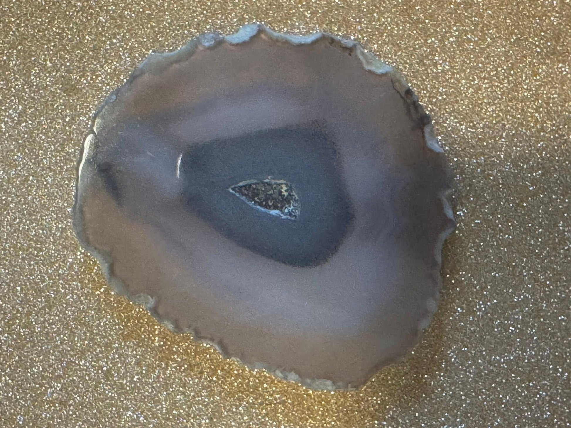Gorgeous agate slice with a dab of drusy. 3 by 2 1/2 inches and 42 grams.