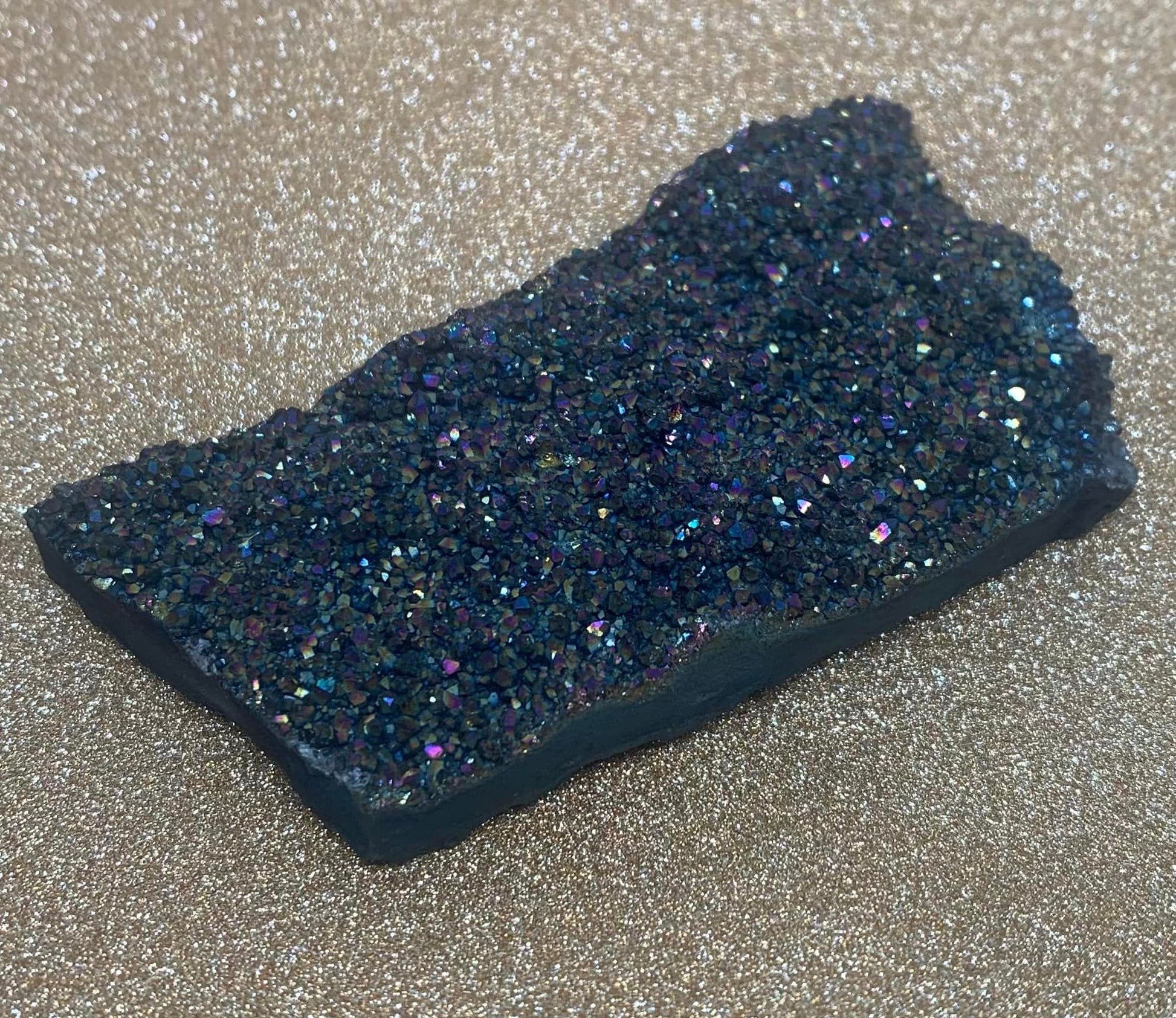 Rainbow aura quartz brings peace and harmony in relationships, clears paths for manifesting, and brings center and insight into oneself.