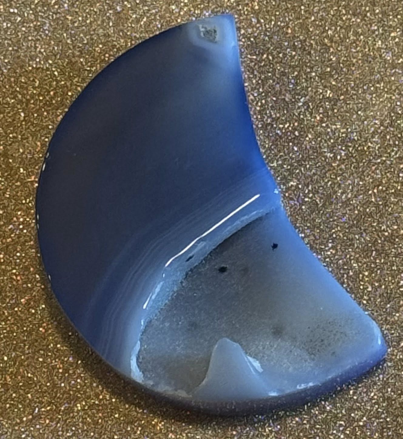 3 by 2 by 1/2-inch sand 78 grams blue chalcedony half-moon carving.