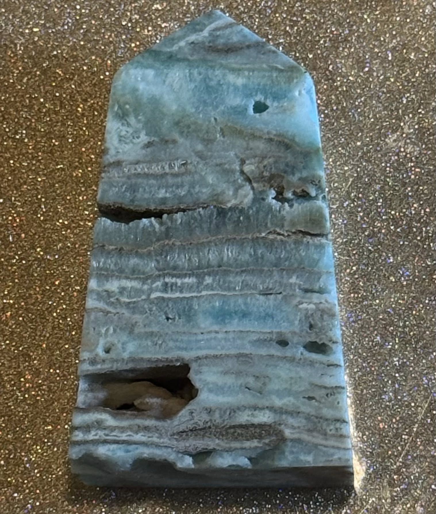 3 by 1 1/2 by 1 inches and 120 grams short and chunky calcite tower.