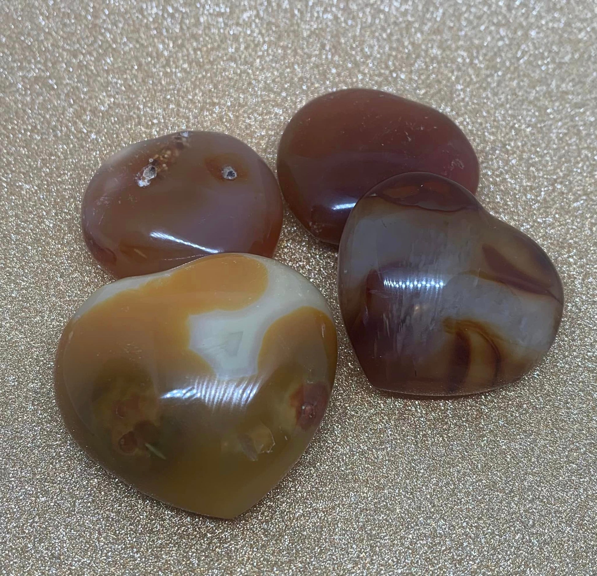 Carnelian heart palm stones 1.2 to 2.1 ounces.