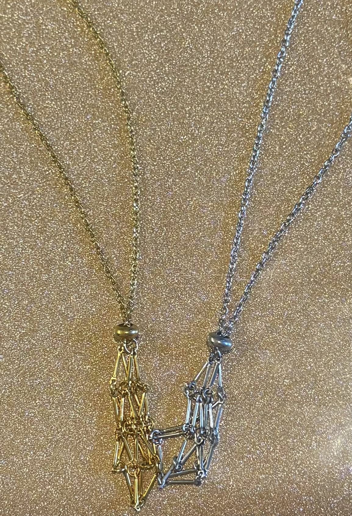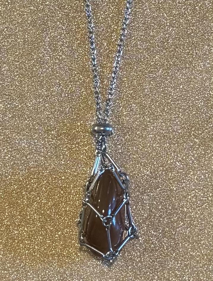 18-inch crystal cage necklace. Easy to use sliding mechanism to open cage and place almost any loose crystal or stone.