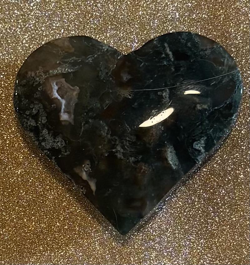 Moss Agate Heart Carving