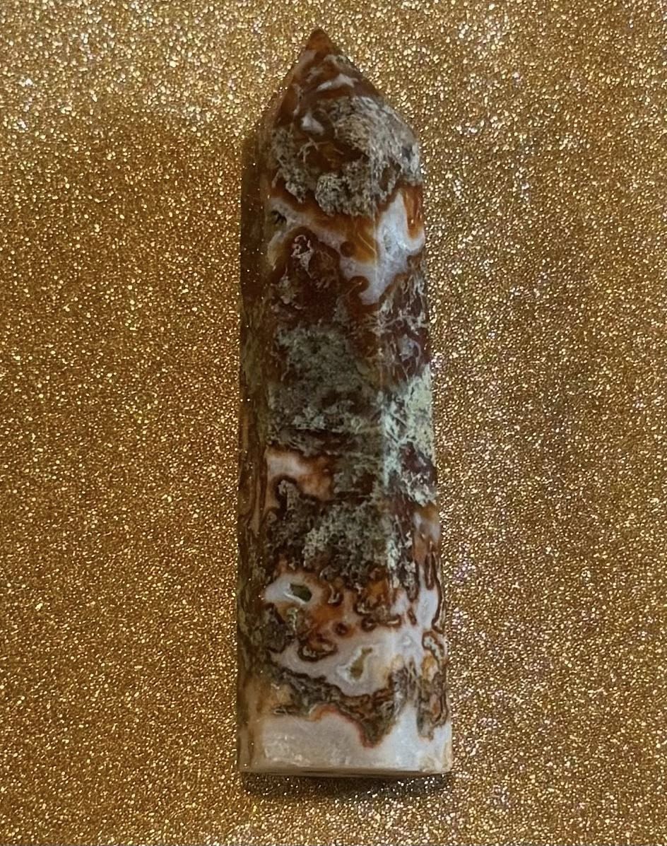 Moss agate is a stabilizing stone that is connected to nature which enables one to refresh their soul and see beauty all around them. It is a great stone for wealth and helps with the growth of new crops, attracting abundance, releasing blockages, and eases anxiety, stress, tension and trapped emotions. Moss agate is also a powerful protector during a relationship break-up.
