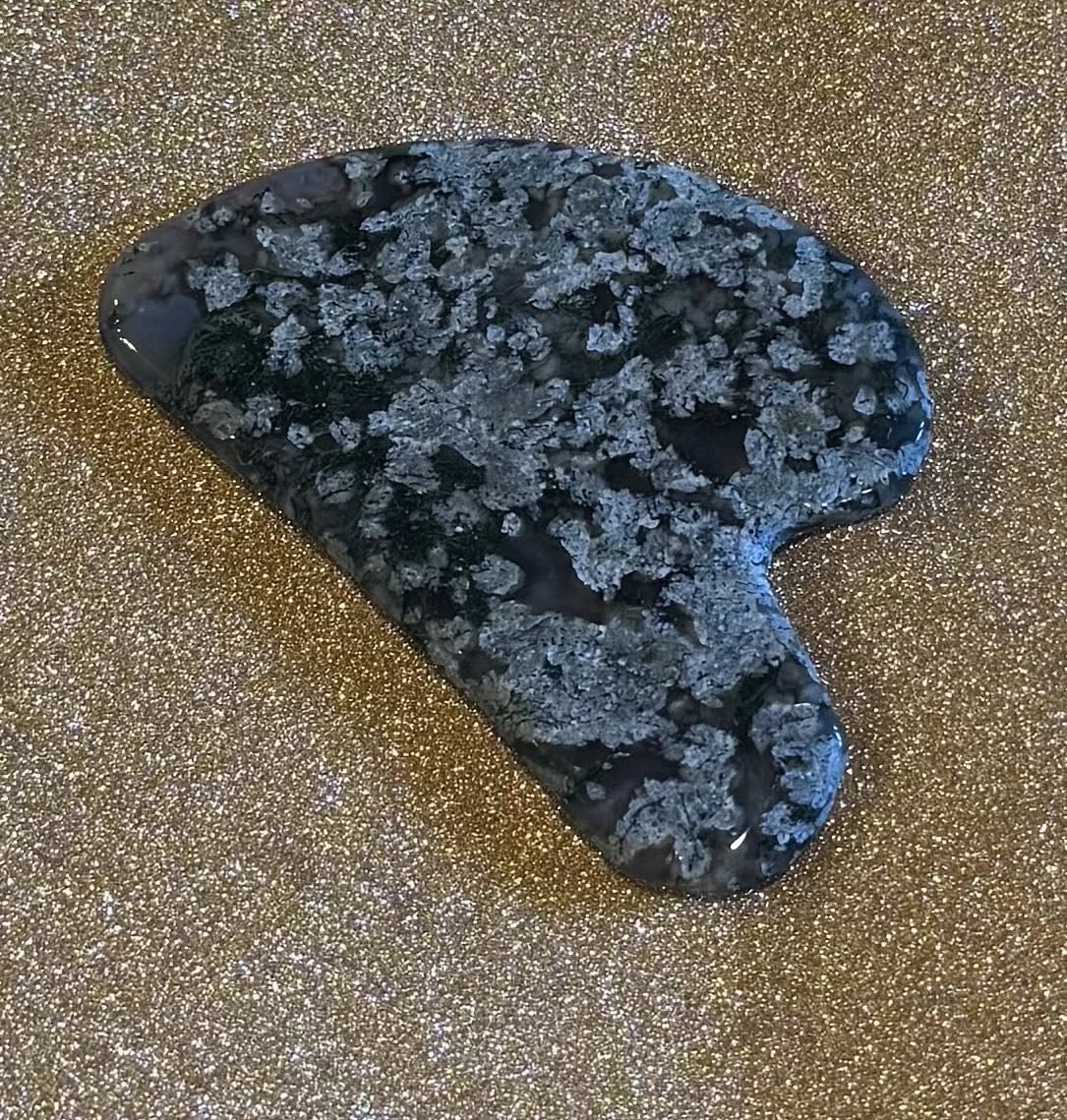 3 by 2 inch and 41 grams moss agate slice (looks like a gua sha tool)
