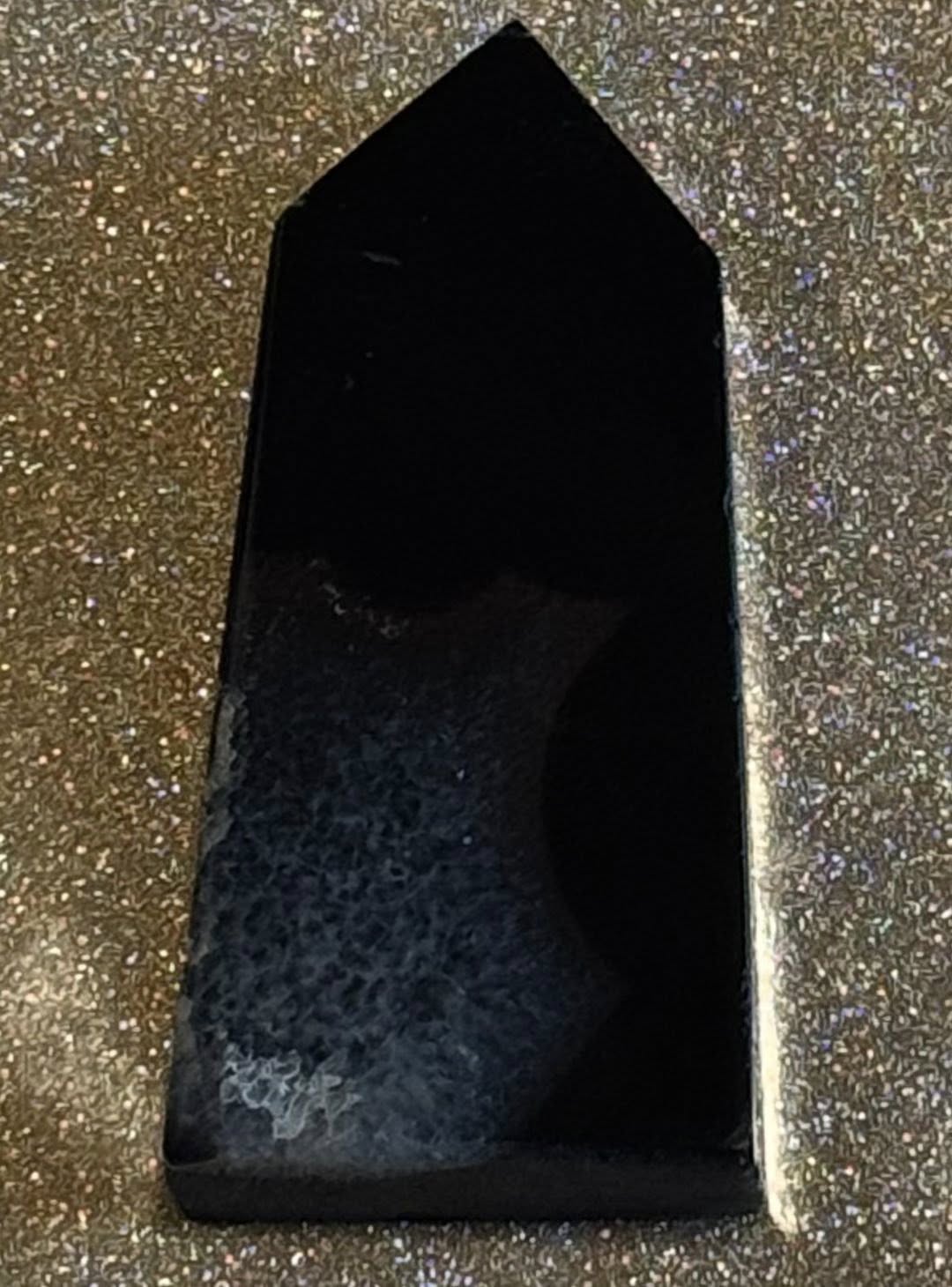 2 3/4 by 1 by 1/2 inches and 53 grams mini obsidian tower.
