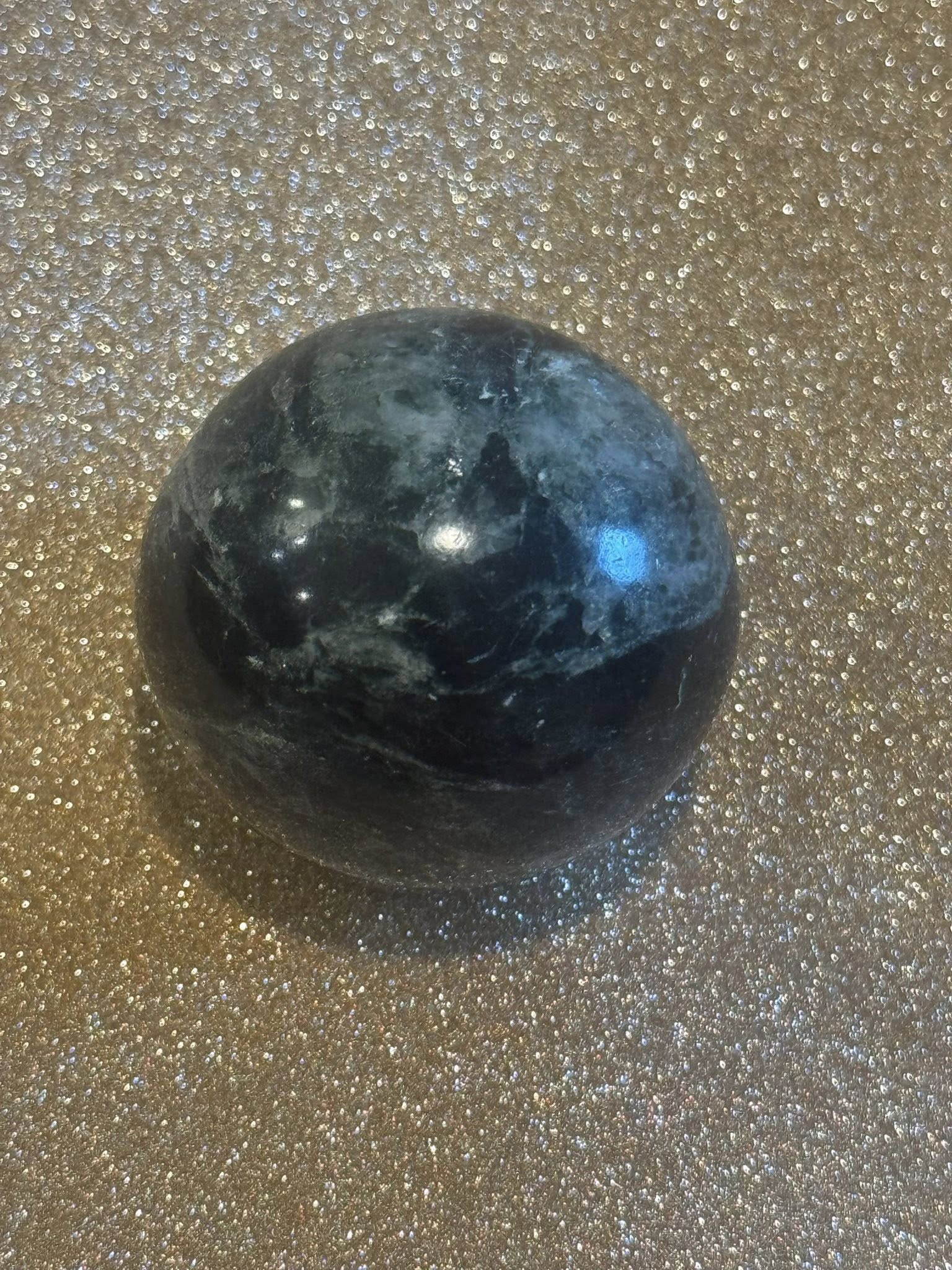 Small ocean jasper sphere (Green and white) just under 2 by 2 inches or 4 inches around and 99 grams.