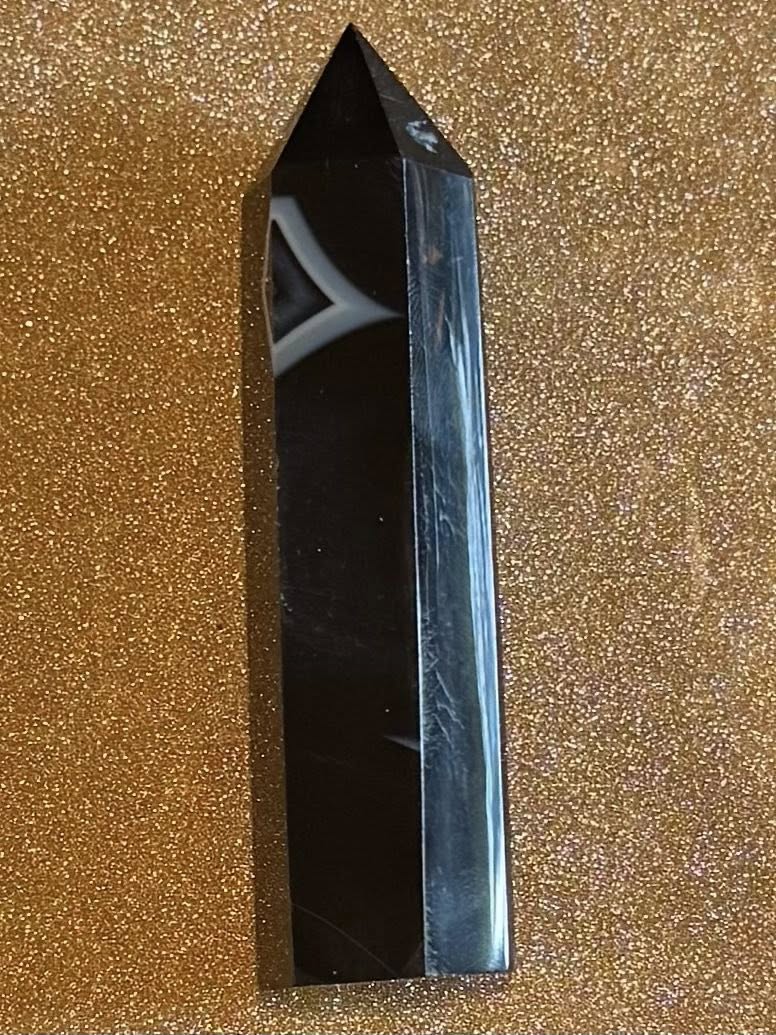 3 1/2 by 1 by 1 inch and 71 grams, gorgeous onyx point.
