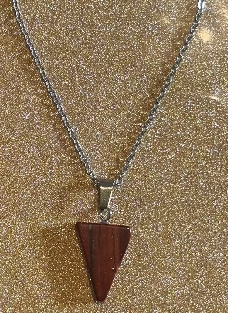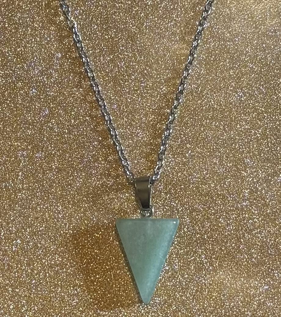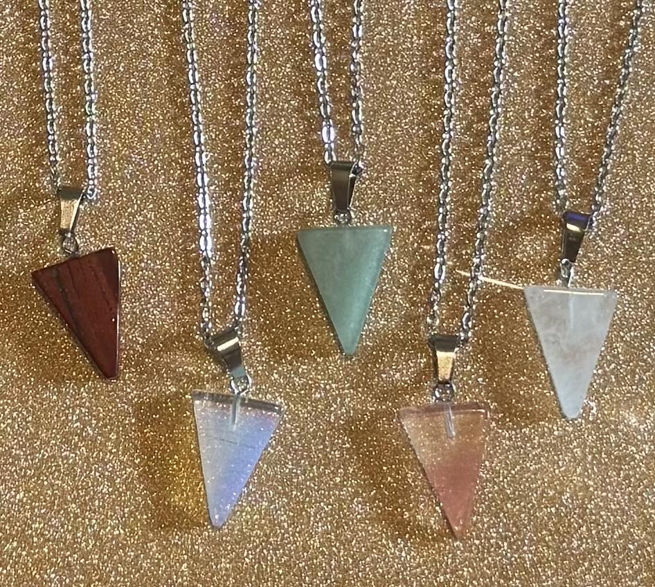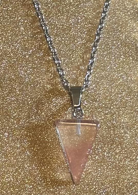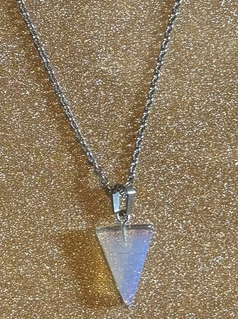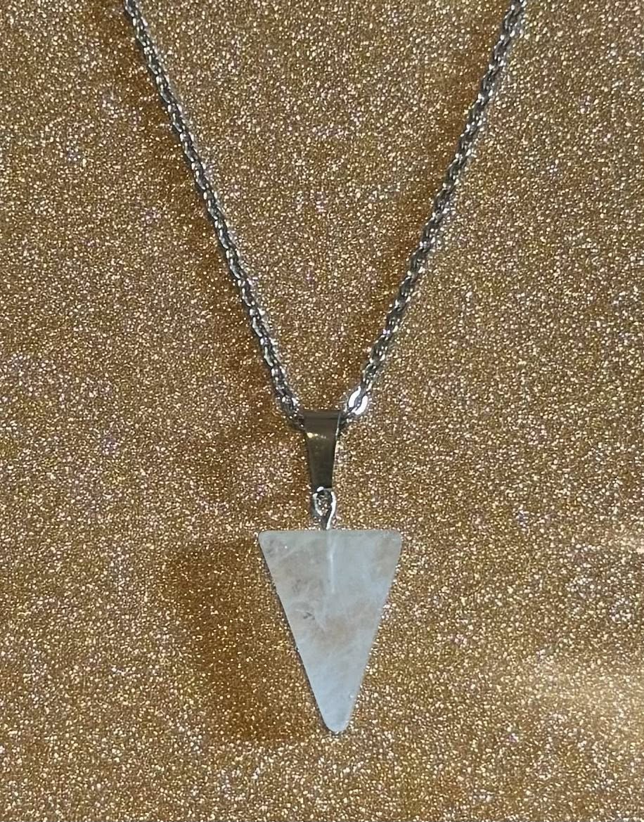 Carved crystal spear on a 17in stainless steel chain.