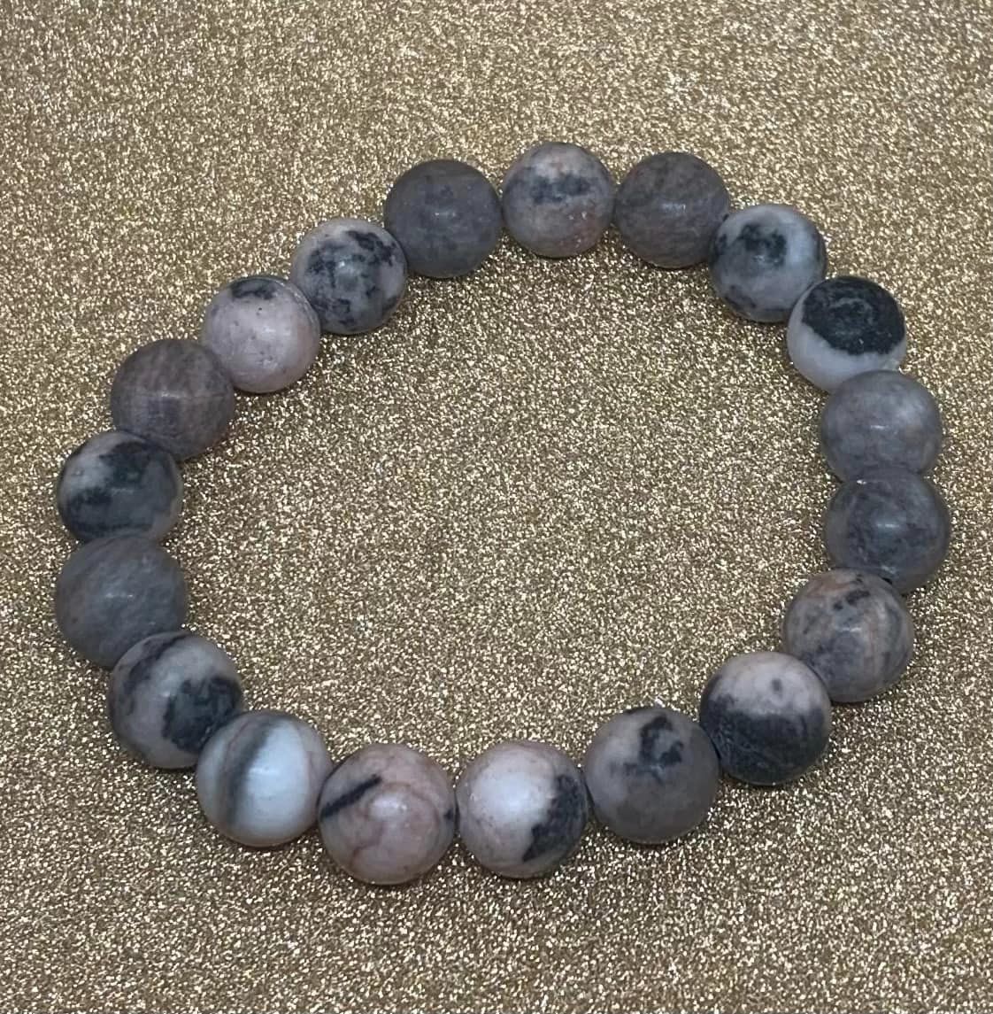 Pink zebra jasper is a grounding and nurturing stone that brings balance, stability, optimism, and contentment to the wearer. It is gentle and calming and promotes relaxation and decreases anxiety.