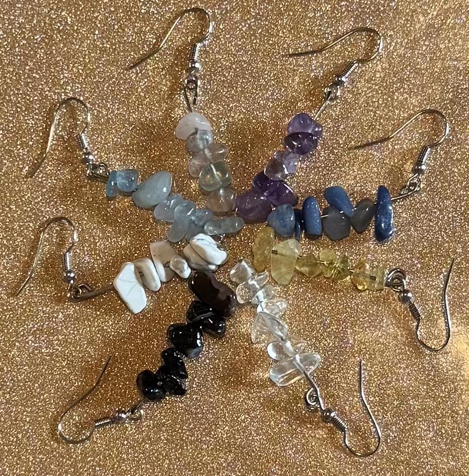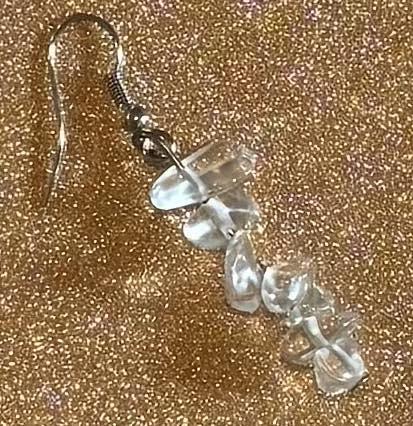 One-inch crystal chipped dangles on silver stainless fishhooks.