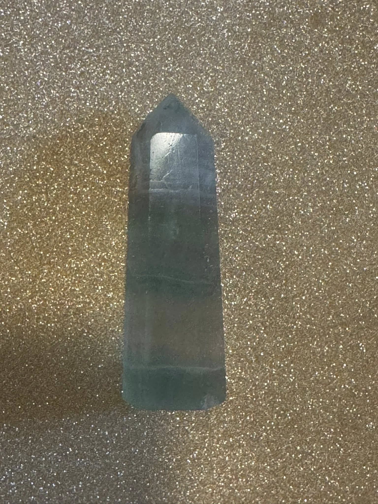 Small rainbow fluorite point. 3 by 1 inches and 49 grams.